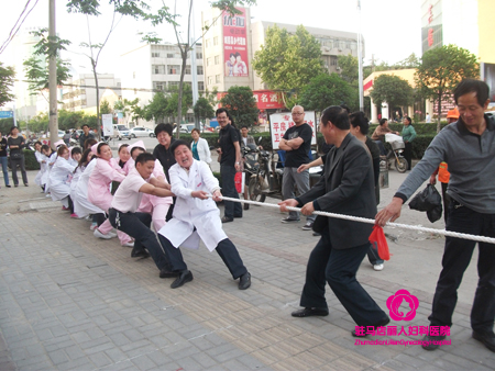5月12日是護(hù)士節(jié),5月12日下午六點(diǎn),真美組織全體醫(yī)護(hù)人員進(jìn)行拔河比賽,來(lái)共同慶祝護(hù)士們自己的節(jié)日。圖為我院醫(yī)護(hù)人員在拔河現(xiàn)場(chǎng)。
